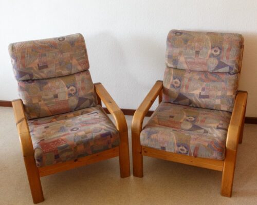 2 Sessel Kiefer gelaugt/geölt mit herausnehmbaren Kissen
